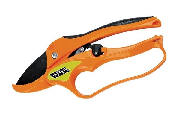 Секатор садовый MASTERTOOL с храповым механизмом 200 мм ручки AL+TPR лезвие Mn65+тефлон ковка 14-6112