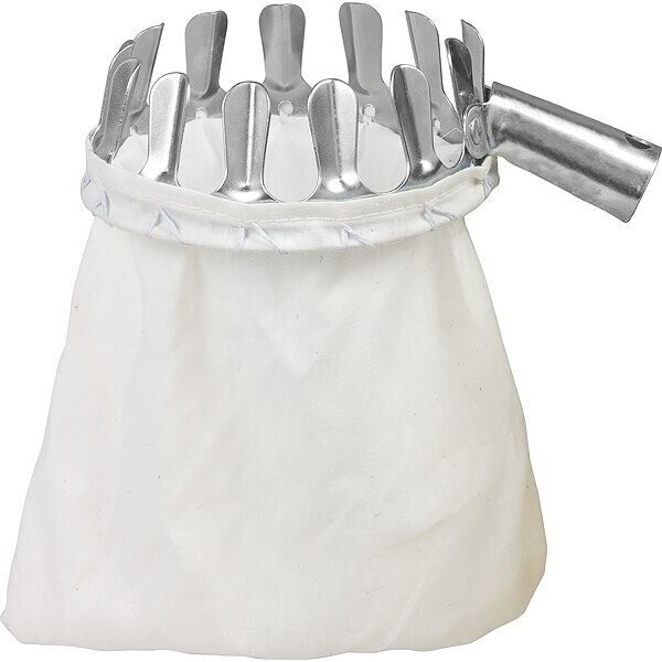 Плодосъемник предназначен для сбора фруктов с высоких веток. Хлопковый мешок легко чистится и стирается. Для срезки плодоножки используются резаки