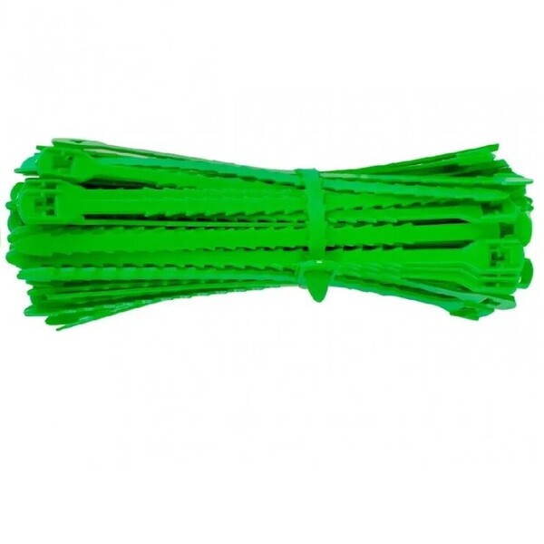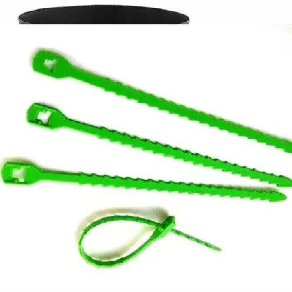 - Многоразовые садовые хомуты, изготовленные из гибкого пластика, являются удобным инструментом для крепления стволов и ветвей деревьев, винограда, малины, смородины, а также стеблей огурцов, помидоров и других сельскохозяйственных и декоративных культур для различных опор и обоев. Пластиковая стяжка оснащена петлей с одной стороны, а вдоль ее основной части в ряд расположены зубчики, что обеспечивает надежное и быстрое соединение. При необходимости хомут можно с легкостью расстегнуть и снять, при этом изделие позволяет отрегулировать ширину охвата в зависимости от толщины стебля растения, таким образом, кора растений не перетягивается. Пластиковые фиксаторы устойчивы к воздействию УФ-лучей и не портятся при длительном контакте с влагой, благодаря чему их можно применять в течение нескольких сезонов.