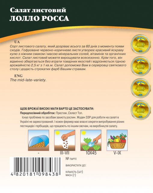 World of Seeds ukraine Упаковка МиниСрок созревания РаннийЦвет Зеленый Красный (Фиолетовый)Производитель World of SeedsСалат Лолло Россо 4г WoS