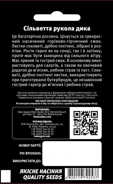 netherlands Упаковка МиниЦвет КрасныйПроизводитель Hem Zaden B.V.Рукола Сильветта 1гр. L