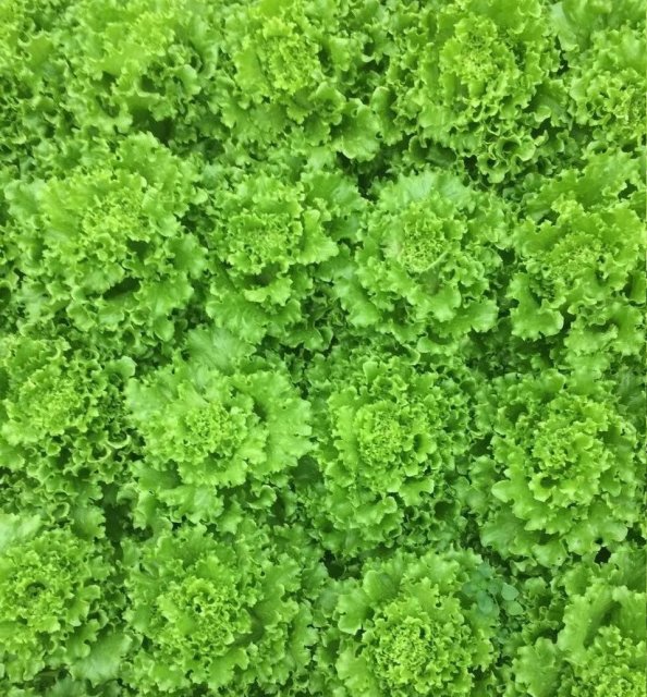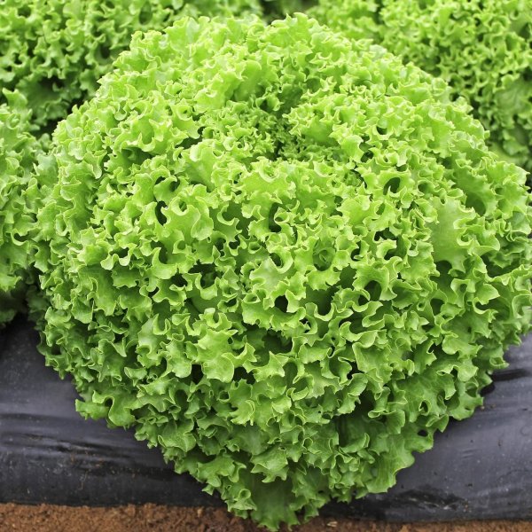 Формирует большие компактные головки привлекательного ярко-зеленого цвета с характерным блеском и волнистым, напивкучерявим, листьями.