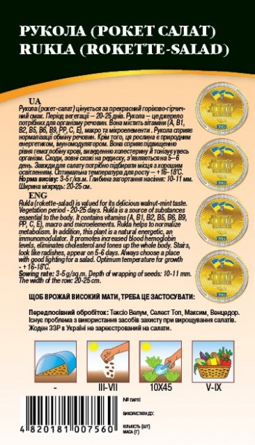 World of Seeds ukraine Срок созревания РаннийПроизводитель World of SeedsРукола Рокет 0,5г WoS