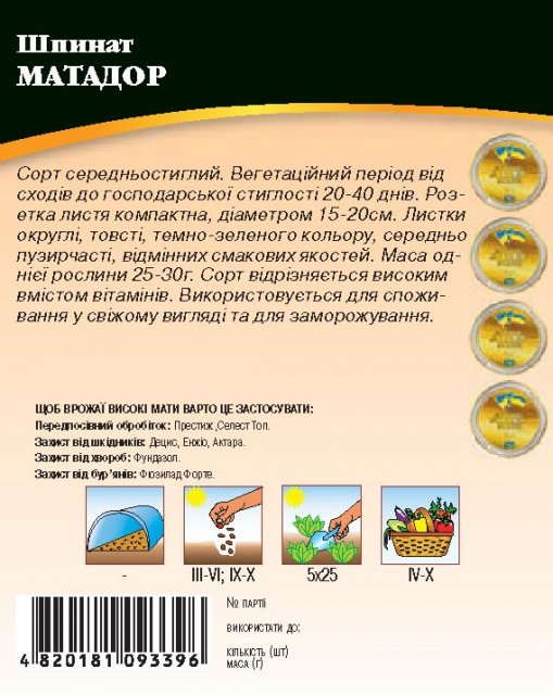 World of Seeds ukraine Упаковка МиниСрок созревания РаннийЦвет ЗеленыйПроизводитель World of SeedsШпинат Матадор 10г WoS
