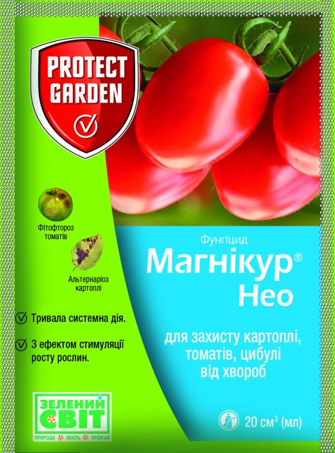 Магникур Нео 450 SC КС (Консенто)- новый комбинированный фунгицид системно-проникающего действия для защиты томатов и картофеля от альтернариозу и фузариозу, а лука - от пероноспороу. Имеет свойство стимулятора роста и развития растений. Лучшие фунгицидные качества Магникур Нео 450 SC КС (Консенто) демонстрирует во время профилактических целях, то есть до проявления признаков болезней, действуя на ранние стадии развития патогена. Консенто® имеет высокое сродство с восковым слоем листьев и образует в поверхностных тканях прочный защитный экран.