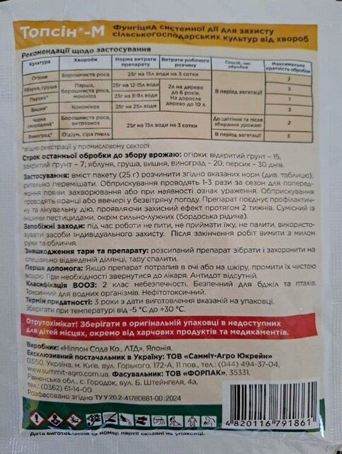 Производитель Саммит-АгроДействие СистемныйТип ФунгицидыУпаковка МиниТопсин М 25г