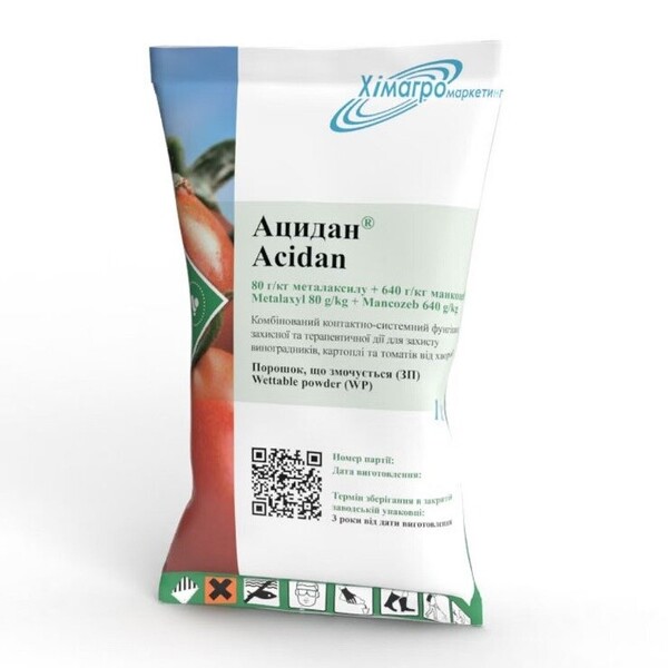 Химагромаркетинг p.r.c. Производитель ХимагромаркетингДействие Контактно-системныйТип ФунгицидыУпаковка ПрофБинарный контактно-системный фунгицид Ацидан 2,5 кг.