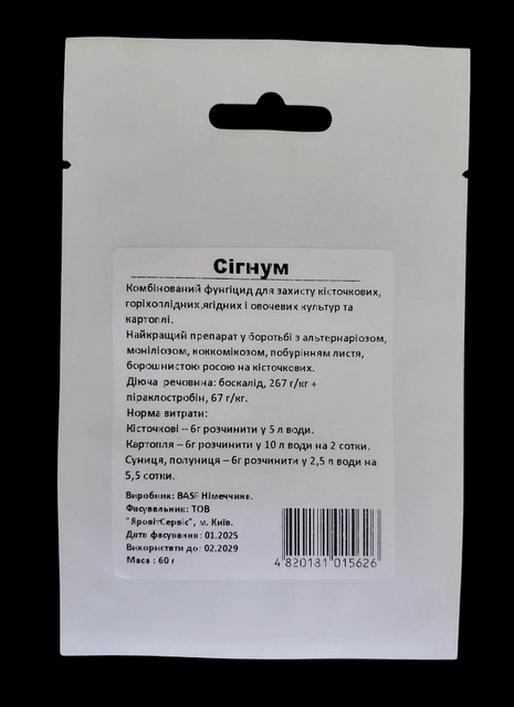 BASF germany Производитель BASF (Германия)Действие СистемныйТип ФунгицидыУпаковка МиниФунгицид Сигнум 60г. (BASF)