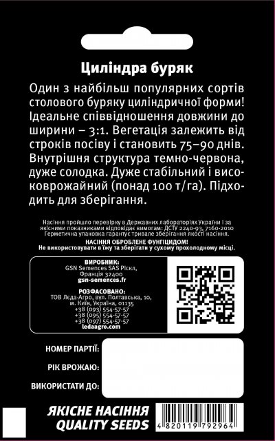 GSN Semences france Упаковка МиниСвекла Цилиндра 3гр. L