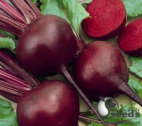 Среднепоздний срок созревания – 90-100 дней. Овощ формирует округлые, правильной формы, одинаковые, красивые корнеплоды с гладкой кожицей и небольшой розеткой листьев. Корнеплод имеет темно-красную окраску без радиальных колец, а внутри также насыщенно-красный. Средний вес корнеплодов 250 г. Благодаря высокой выровненности и товарности свёкла дает очень высокие урожаи, что проверено на практике. Очень выносливый и практичный овощ универсального использования. Основное предназначение свёклы – длительное хранение, переработка, свежий рынок. Она имеет высокие вкусовые качества, устойчива к стрелкованию.