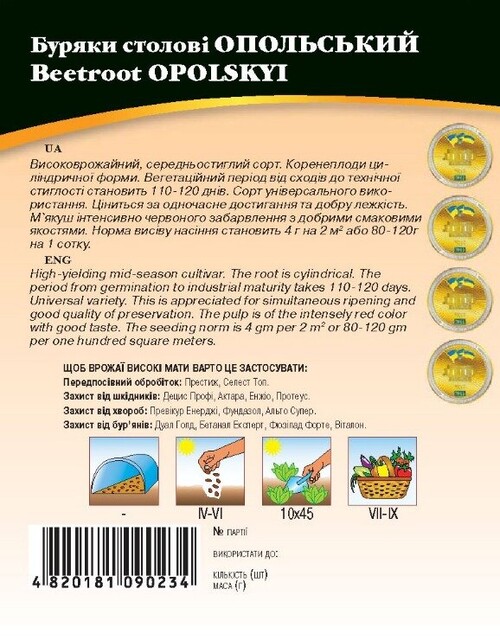 World of Seeds ukraine Упаковка МиниСрок созревания СреднеспелыйЦвет КрасныйФорма плода ЦилиндрическийПроизводитель World of SeedsСвекла Опольская 10г WoS