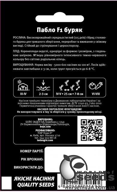 Bejo Zaden netherlands Упаковка МиниСрок созревания Среднеранний СреднеспелыйПроизводитель Bejo ZadenСвекла Пабло F1 750 семян. L