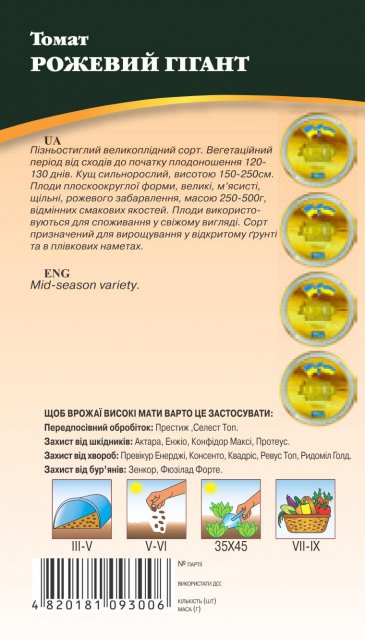 World of Seeds ukraine Упаковка МиниЦвет Красный Розовый ЖелтыйПроизводитель World of SeedsПомидоры Розовый гигант 0,1г WoS