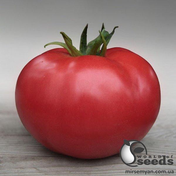 Плод: очень большие плоскоокруглые плоды с ровной и гладкой поверхностью привлекательного розового окраса и не имеет зеленого пятна. Плотная и сахарная структура с потрясающим сладким вкусом и ароматом. Масса помидора составляет 320-350 грамм.