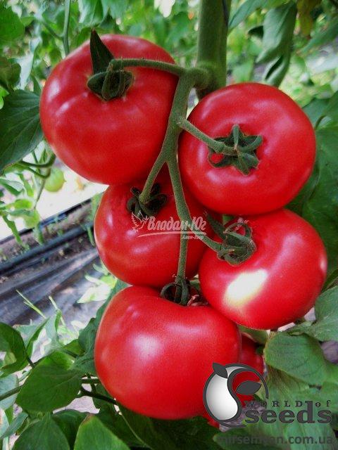 розового томата индетерминантного типа. Основные особенности гибрида чрезвычайно высокая товарность и однородность плодов, хорошее завязывание в условиях повышенных и пониженных температур. Растение компактное, с короткими междоузлиями. Листовой аппарат хорошо защищает плоды от солнечных ожогов. Плоды отличаются насыщенным малиново-розовым цветом, изысканным вкусом, сочные и мясистые, средней массой 200-220 г. Не имеют зеленого пятна у плодоножки при созревании. Плоды плотные, прекрасно транспортируются на дальние расстояния без потери товарных и вкусовых качеств.