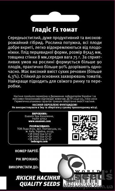 ESASEM italy Упаковка МиниСрок созревания СреднераннийПроизводитель ESASEMПомидор Гладис F1 50 семян. L