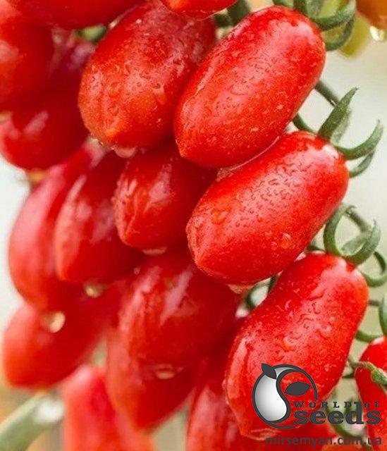 Гибрид раннего срока созревания. Растение индетерминантное, сильное, с короткими междоузлиями, листовая масса сильная. Кисть компактная, плотная, из 14-16 плодов. Плоды грушевидно-цилиндрической формы, длиной 45 мм массой 20-25гр, ярко-красного цвета. Вкусовые качества отличные. Плоды долго сохраняют товарный вид и отличные вкусовые качества (LSL-тип). Высокая устойчивость: вертицилезное увядание (VD), фузариоз (Fol 1.2), вирус томатной мозаики (ToMV). Средняя устойчивость: Нематоды (Ma, Mi, Mj), вирус пятнистого увядания томата(TSWV), вирус желтого скручивания листьев томата. Оптимальный возраст рассады для высадки в грунт 45-50 дней. Десертные вкусовые качества достигаются только при условии созревания плодов на растении, что наступает через 8-12 дней после достижения красного цвета. Растение формируется в 1-2 стебля в зависимости от условий выращивания.
