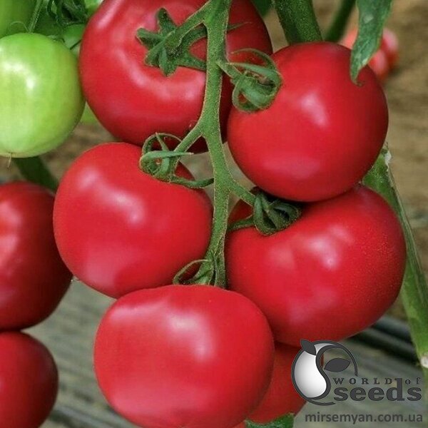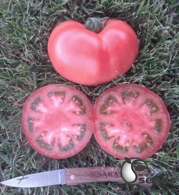 Высокоурожайный индетерминантный томат, плоды округло-плоские массой 200-220 г, крупные, достаточно плотные, лежкие и очень привлекательные. Качество спелого томата по вкусу, цвету и внутренней структуре делает этот гибрид безоговорочным лидером на рынке розового томата. Товарность урожая на очень высоком уровне. Имеет широкую комплексную устойчивость к болезням. Очень надежные результаты во всех регионах России от южных до средней полосы, подходит как для продленного, так и для короткого оборота.
