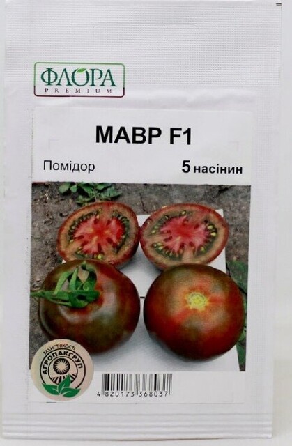 Мавр F1 - ранний гибрид, от первых всходов до начала плодоношения 110 дней. Тип: индетерминантный. Растение мощное, компактное и хорошо облиственное. Плоды круглой формы, потрясающие по вкусу, весом 140-160 грамм, красивого коричневого окраса, без зеленого пятнышка, многокамерные, плотные. Транспортабельность и товарные вид замечательные. При высоких температурах гибрид хорошо завязывает плоды, также он холодостойкий и засухоустойчив. Гибрид устойчив ко многим заболеваниям.
