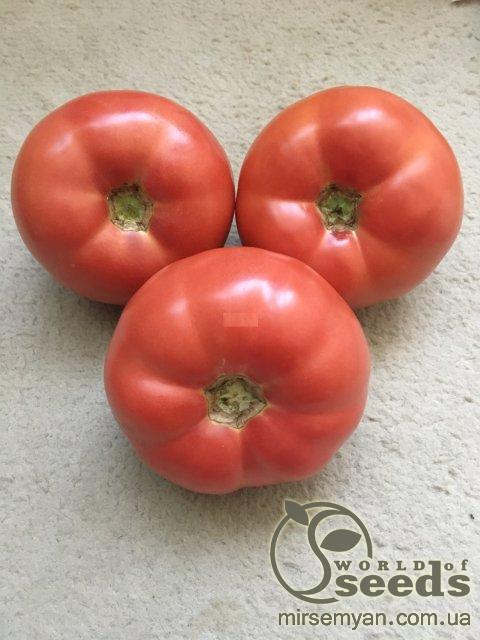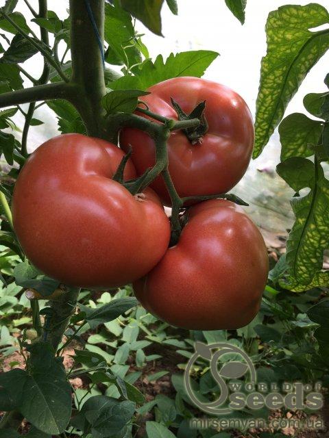 Созревание через 60-62 дней после пересадки. Высокопроизводительный тепличный томат. Плоды большого размера, весом 220-250 г (первые кисти 300-350 г и выше). Плоды без зеленого пятна у плодоножки, обладают высокой плотностью, отсутствует растрескивание. Растение с оротким междоузлием и отличной структурой кисти. В среднем на каждой кисти 4-5 красивых однородных плодов насыщенного розового цвета. Сверхранний урожайный крупноплодный розовый томат. Растения здоровые, сбалансированные, открытые, имеют отличные вкусовые характеристики - сладкий и очень вкусный. Высокий и стабильный урожай как в первом, так и во втором обороте.