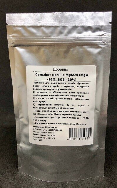 Сульфат Магния - MgSO4*7H2O - магний сернокислый семиводный (сульфат магния) - магниевое удобрение, хорошо растворимое в воде и не подвергающееся слеживанию.