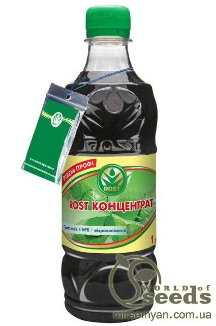 Натуральное жидкое комплексное удобрение на основе гумата калия. ROST-концентрат – удобрение со стимулирующим эффектом и фунгицидной активностью, является продуктом высокотехнологичной переработки натурального торфа, из которого извлечены активные вещества: азот, фосфор, калий, микроэлементы, а гуминовые кислоты из нерастворимых переведены в растворимые одновалентные соли. ROST-концентрат производится с использованием экологически чистого природного сырья – низинного торфа. Улучшение: - Мощная корневая система; - восстановление плодородия почвы; - "дружная" всхожесть и прорастание семян; - получение экологически чистой продукции; - ускорение биопроцессов на клеточном уровне; - активный рост и полноценное развитие растений; -повышение урожайности и качества продукции; - транспортировка питательных элементов в растении.