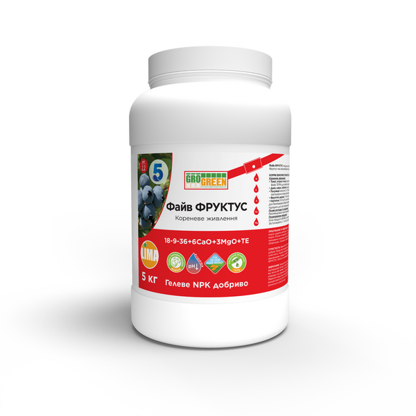 Удобрение GroGreen FIVE 18-9-36+6СаО+3MgO+TE, 5кг