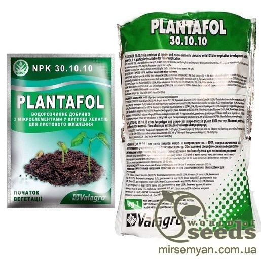 Plantafol 30-10-10 мешок 1 кг Описание Плантафол - идеальное удобрение для листовой подкормки широкого спектра растений на начальной стадии развития. Улучшает вегетацию, повышает качественные характеристики урожая. Дополняет корневую подкормку и способствует развитию растений во время неблагоприятных погодных условий (заморозки, засуха, излишек влаги и др.) Специально для повышения эффективности в состав препарата входит прилипатель. Удобрение обладает отличной растворимостью и вносится через опрыскиватели с любыми типами форсунок. Плантафол характеризуется высоким содержанием NPK и наличием азота в амидной форме, что оптимально для листовой подкормки. Преимущества Плантафола: Высокое содержание питательных веществ; Наличие прилипателя в составе удобрения; Сбалансированные формулы для всех стадий развития; Наличие азота в амидной форме; Разработан для стимуляции развития растений во время вегетативных фаз, когда необходимо удлинять побеги и развивать листовой аппарат (в основном до цветения и/или в начале фазы увеличения плода). Состав % 30.10.10 Азота (N) всего 30,0 нитратный 3,0 аммиачный 3,0 амидный 24,0 Фосфор (P2O5) 10,0 Калий (K2O) 10,0 Сера (SO3) 3,5 Бор (B) 0,02 Железо Fe (ЭДТА) 0,1 Марганец Mn (ЭДТА) 0,05 Цинк Zn (ЭДТА) 0,05 Медь Cu (ЭДТА) 0,05 ИНСТРУКЦИЯ ПО ПРИМЕНЕНИЮ: Листовая подкормка: Яблоки, груши: 2,5-4,0 кг/га Косточковые: 2,5-4,0 кг/га Технические культуры: 1,0-3,0 кг/га Виноград: 2,0-3,0 кг/га Цитрусовые и оливы: 3,0-4,0 кг/га Цветы: 150-250г/100 л. воды Табак: 2,5-3,0 кг/га Овощи: тыквенные , томаты, салат: 2,5-3,5 кг/га Декоративные культуры: 150-250 г/100 л. воды Полевые культуры: 1,0-3,0 кг/га Клубника, малина: 2,5-3,5 кг/га Картофель, капуста: 2,0-3,0 кг/га Рекомендуемая норма расхода рабочего раствора для полевых культур – 200-250 л/га., концентрация – 0,5-2%. Действие каждого конкретного вида Плантофола направлено на стимулирование физиологических процессов, связанных с потребностями в питании в определенные фазы развития любого растительного организма, независимо от почвенно-климатических условий применения, вида и сорта культуры Результативность листовой подкормки обеспечивается присутствием в комплексах всех питательных элементов: и макро, и микро, так как они участвуют в основных обменных процессах и их усвоение происходит одновременно. Основное действие выполняют макроэлементы, направляя обменные процессы в сторону белкового (больше азота), либо углеводного синтеза (больше калия), микроэлементы улучшают усвоение и работу макроэлементов, стимулируя метаболизм.