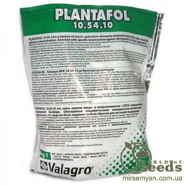 Удобрение Plantafol 10.54.10 для листовой подкормки растений в период цветения и бутонизации. Удобрение «Plantafol», созданное квалифицированными специалистами в лаборатории итальянской фирмы Valagro, представляет собой белый порошок кристаллической консистенции. Плантафол (Plantafol) 10-54-10, по Евростандарту, относится к ряду высоко химически чистых и полностью растворимых удобрений специально разработанных для листовой подкормки. В этом спектре есть полный комплекс N, P, K + микроэлементы, для обеспечения потребностей растений различными элементами на всех стадиях развития, повышения урожайности и качества с/х культур. Хелаты микроэлементов устойчивы в широком диапазоне рН. Плантафол (Plantafol) 10.54.10может смешиваться и применяться с большинством пестицидов. В состав входят ПАВ и адъюванты, повышающие кутикулярную клеточную проницаемость и эффективность листовых подкормок. Высокое содержание фосфора в Плантафол (Plantafol) 10.54.10 помогает растениям улучшать процессы формирования генеративных органов, цветения и завязи плода. Удобрение применяется в начальные фазы роста, перед и во время цветения, во время всех ситуаций, когда необходимо избегать вегетативного развития. Состав Состав: (w/w в 1 кг.) Общий азот (N), в т.ч. - 10,0% - аммиачный - 8,0% - амидный - 2,0% Фосфор (P2O5) - 54,0% Калий (K2O) - 10,0% Бор (B) - 0,02% Железо (Fe) EDTA - 0,1% Марганец (Mn) EDTA - 0,05% Цинк (Zn) EDTA - 0,05% Медь (Cu) EDTA - 0,05% Физические Характеристики Внешний вид кристаллический порошок Цвет белый Плотность (г/см3) 1,14 pH (1% водный раствор) 4,5 Растворимость (г/100 мл) 30 Кондуктивность (1‰ mS/cm) 18°C 0,8 Применение Внекорневая подкормка 1,5 - 2,5 г на 1 л воды.
