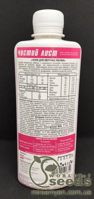УДОБРЕНИЕ ДЛЯ ЦВЕТУЩИХ РАСТЕНИЙ УСПЕХ 0,31Л Эффективное комплексное, прекрасно сбалансированное удобрение «Успех» для цветущих растений, содержит все необходимые макро и микроэлементы. В его состав водит: азот-3,5%, фосфор-5,5%, калий-4%, железо-1,0%, магний- 0,5%, кальций-0,35% , сера-0,2%, бор- 0,2%, марганец- 0,4%, медь-0,2%, цинк-0,3%, молибден-0,02%. При регулярном применении этого удобрения увеличивается период цветения, а так же количество и размер цветов на растении, яркость их окраски, стимулируется бутонизация. Гармонично и пропорционально наращивается крона и корневая система, восстанавливается истощённая почва, повышается устойчивость растений к заболеваниям, в т.ч. и от хлороза. Благодаря концентрированной форме, то оно кроме всех остальных преимуществ будет ещё и более выгодно и экономично.