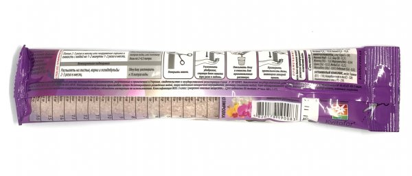 Удобрение кристаллическое "Чистый Лист" для орхидей 100 г. (Kvitofor) Торговая марка «Чистый Лист» представляет идеальное удобрение, дающее лучший результат: - высокое качество плодов и цветов; - ранняя и высококачественная продукция благодаря сбалансированному составу N.P.K.; - отсутствие хлороза благодаря наличию железа и магния; - полная растворимость даже в холодной воде; - компенсирует дефицит макро- и микроэлементов; - эффективность и простота применения; - совместимо с пестицидами и другими удобрениями. Применение продукции ТМ «ЧИСТЫЙ ЛИСТ» - лучший способ поддержания плодородия почвы. Удобрение обеспечивает полноценное питание для растений и может быть использовано в любой системе полива (капельное орошение, дождевание, гидропоника и т.д.) Состав: азот-16%, фосфор-7%, калий-18,5 %, железо-0,7%, магний- 2,0,%, сера-58%, бор- 0,2%, марганец- 0,3%, медь-0,05%, цинк-0,1%, молибден-0,01%, кобальт-0,01 Меры предосторожности: Рекомендуется выполнять работы в перчатках. При попадании на кожу промыть водой с мылом. Не допускать попадания в еду и внутрь организма. При попадании в глаза промыть большим количеством воды. При попадании внутрь организма выпить несколько стаканов воды, и вызвать рвоту. Обратиться к врачу. Рекомендации по хранению: Хранить в сухом, темном, не доступном для детей месте отдельно от лекарств и пищевых продуктов при t от -20 до +35°С. Срок годности: 36 месяцев.