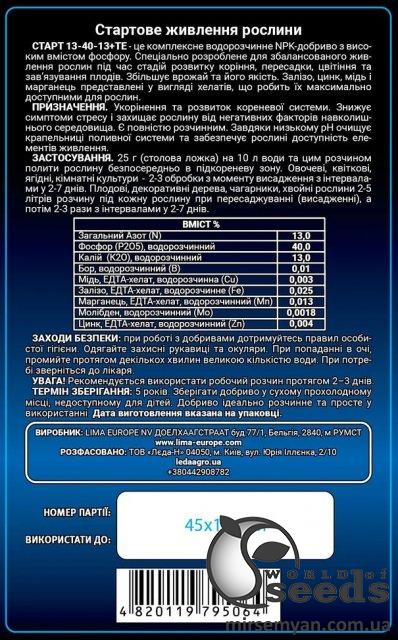 Грогрин Старт (13-40-13+ТЕ) - комплексное водорастворимое NPK-удобрение с высоким содержанием фосфора. Специально разработанное для сбалансированного питания растений во время стадий роста развития корневой системы, пересадки, цветения и завязывания плодов. Железо, цинк, медь и марганец представлены в виде хелатов, что делает их максимально доступными для растений. Увеличивает урожай и его качество. Предназначено для корневой подкормки. Снижает симптомы стресса и защищает от негативных факторов окружающей среды. Полностью растворимое. Благодаря низкому pH очищает капельницы системы полива и обеспечивает растению доступ элементов питания.