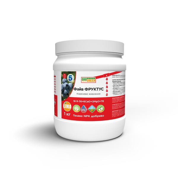 Удобрение GroGreen FIVE 18-9-36+6СаО+3MgO+TE, 1кг