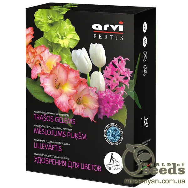 UAB Arvi fertis lithuania Упаковка МиниПроизводитель UAB Вид ГранулаСпособ внесения Под кореньПериод внесения Начало вегетации Цветение/буотонизацияФертис для цветов 12-8-16+МЕ, 1кг Fertis
