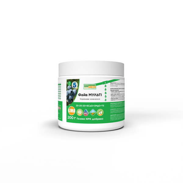 Удобрение ГроГрин Мульти 5, Гель 20-20-20+6Са+3MgO+TE, 200 г
