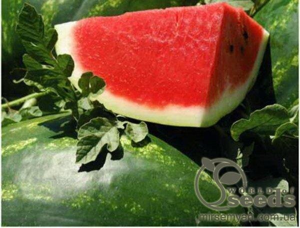 М'якуш червона, середньої щільності. Смак хороший та відмінний. Гібрид кавуна з високим вмістом цукру.