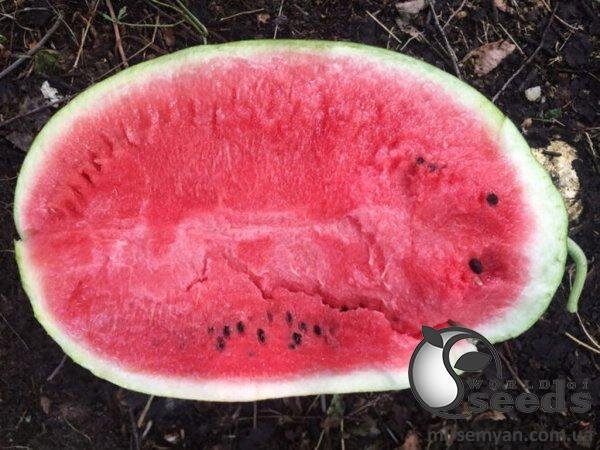 Ранній гібрид - 70 днів Плоди формуються масою 9-14 кг, овально-видовженої форми; М'якуш насичено-червоного кольору Даний гібрид відрізняється високим вмістом цукру, дуже смачний; n Потужна коренева система, добре облистнений;