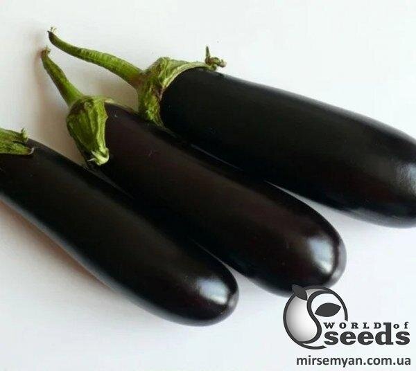Баклажан Мірінда F1. Гібрид американських селекціонерів циліндричної форми. Легко адаптується до агротехніки. Цей гібрид вирощують у відкритому грунті та під тимчасовими укриттями. Посів насіння у відкритий ґрунт виробляють за сприятливих погодних умов, щоб уберегти сходи від різких перепадів температур використовують агроволокно. Попередньо вирощена розсада дає можливість мінімізувати втрати при проростанні насіння, а також отримати більш ранню продукцію та реалізувати її за найкращою ціною. Рослина формується потужна, утворює 2 – 3 плодові пагони. При висадженні розсади в ґрунт необхідно враховувати густоту рослин 5 – 6 рослин на 1 м2. Баклажан Міринда F1 стійкий до захворювань відкритого грунту, проте при ураженні нижнього листя необхідно видалити. Кущ масивний без шпильок. Це великий плюс при збиранні врожаю та транспортуванні. Плоди баклажана Мірінда F1 довгі 25 см. Форма витягнута та циліндрична. Колір темно-фіолетовий. Внутрішня структура щільна та ніжна, світло-кремового кольору. Високі смакові якості характерні для лідера ринку баклажанів у своєму сегменті баклажану Мірінда F1. Насіння баклажана Мірінда F1 упаковане виробником і підготовлене до посіву.