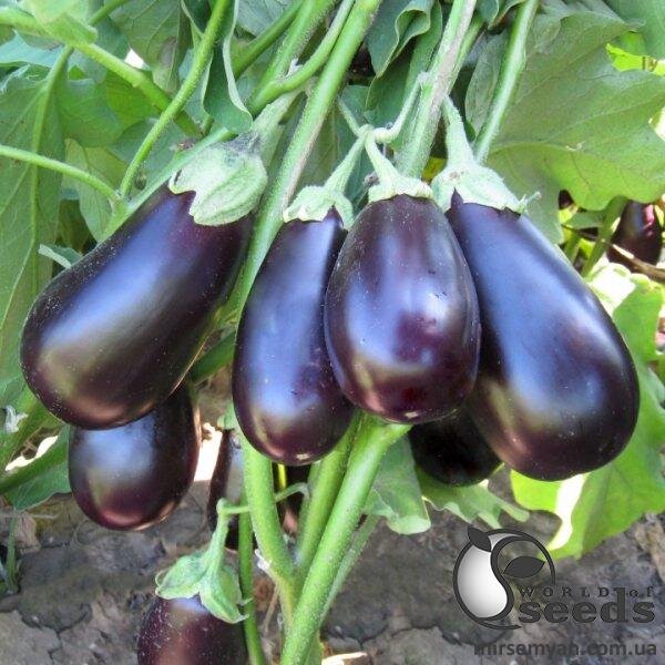 ТИП: - кистьовий. РОСЛИНА: - ранній, 65-70 днів після висадки розсади; - компактна вертикальна рослина з високою силою росту; - листя добре захищає плоди від сонячних опіків; n - відмінна зав'язуваність і однорідність плодів. n - плоди грушоподібної форми; n - тверді, глянсові, м'ясисті, темно-фіолетового кольору; n - довжина плода: 20-23 см; n - вага плода: 180-230 г; n - плоди з маленькою насіннєвою камерою і дуже дрібним насінням ; - м'якоть кремово-біла, щільна, без гіркоти; відмінні смакові якості; високоврожайний гібрид; добре зав'язує плоди в жарких умовах. ДОДАТКОВА ІНФОРМАЦІЯ: - для вирощування у відкритому грунті; - стабільний пластичний гібрид; n - тривалий період плодоношення; n - стійкість до вилягання; n - адаптація до різних умов вирощування; n - відмінні показники при транспортуванні.