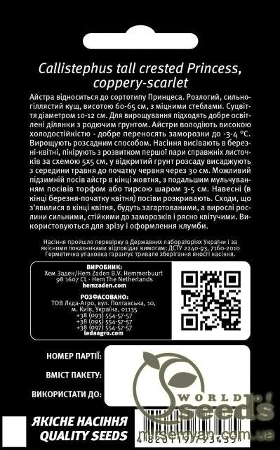 10 Виробник Hem Zaden B.V. (Netherlands)Астра "Принцеса", мідно-червона, хризантемоподібна 0,2г. L (Hem Zaden BV Нідерланди)