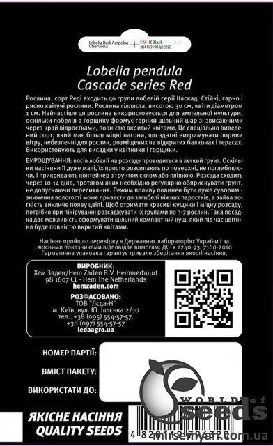 10 Упаковка МініЛобелія Редді ампельна (червона) 0.1 г
