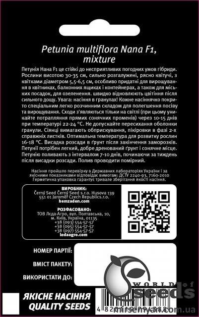 10 Упаковка МініВиробник Hem Zaden B.V. (Netherlands)Петунія Нана F1, багатоквіткова вишукана суміш, 10 семена Л