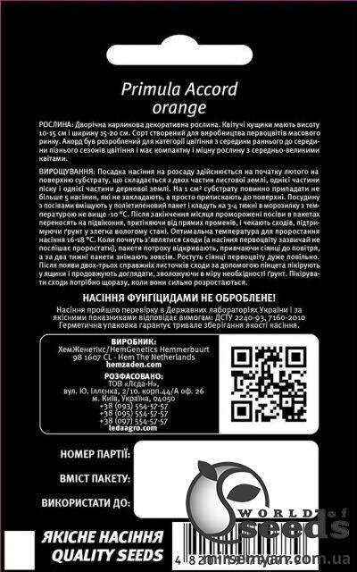 10 Упаковка МініВиробник Hem Zaden B.V. (Netherlands)Примула Акорд F1, помаранчева 10 семена Л