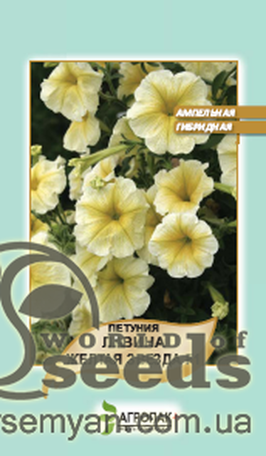 Агропакгруп poland Упаковка МініТермін дозрівання СереднійВиробник Петунія гібридна ампельна крупноквіткова "Лавина жовта зірка" F1, 20 насінин А
