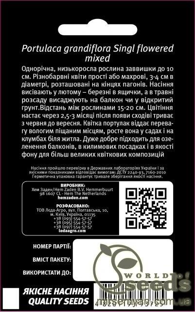 10 Виробник Hem Zaden B.V. (Netherlands)Портулак "Грандіфлора Сінгл" суміш 0,05г. (Hem Zaden BV Netherlands)