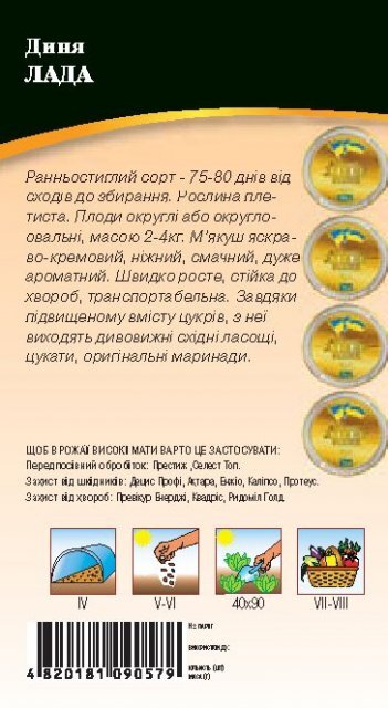 World of Seeds ukraine Упаковка МініТермін дозрівання Ранній СередньораннійКолір ЖовтийВиробник World of SeedsДиня Лада. 2 г. WoS