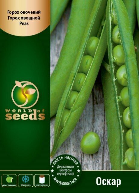 World of Seeds ukraine Упаковка ПрофТермін дозрівання УльтрараннійКолір ЗеленийТип СолодкийВиробник SEMOГорох овочевий Оскар 1 кг. WoS