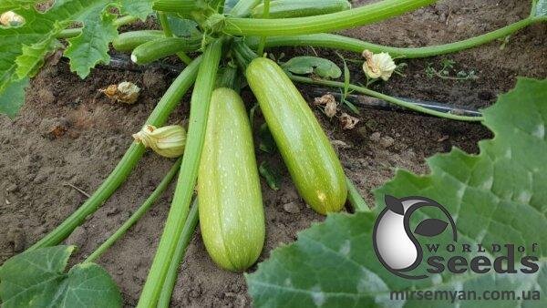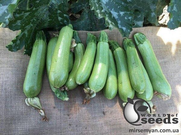 Ранній високопродуктивний кущовий гібрид кабачка. Універсальний гібрид, для вирощування у відкритому ґрунті та в тунелях. Дозріває через 30 днів у літній період. Характерною особливістю є стійкість до трьох вірусів і борошнистої роси. Компактні відкриті рослини з короткими міжвузлями легко прибирати. Красиві однорідні циліндричні плоди. Привабливі світло-зеленого кольору. М'якуш білий, ніжний смак, маленька насіннєва камера. Для свіжого ринку та переробки.