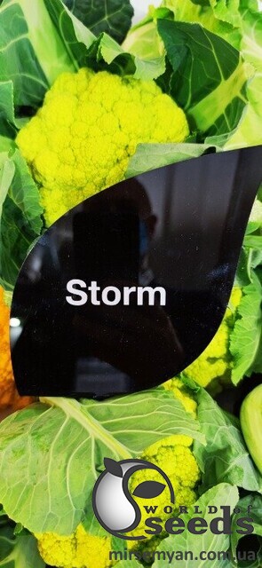 Капуста цвітна Грін Сторм F1 / Green Storm F1 2 500 с. Сингента (Syngenta). Вегетаційний період — 85 днів. Середня маса головки — 2 кг. Має приємний салатовий колір. Високі смакові властивості. Чудові товарні якості, відмінна структура. Реалізація у свіжому вигляді. Для збирання з початку осені.
