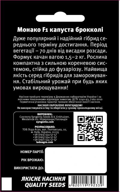 Упаковка МініТермін дозрівання СереднійВиробник SyngentaКапуста броколі Монако F1 10 шт. L (Сингента / Syngenta)